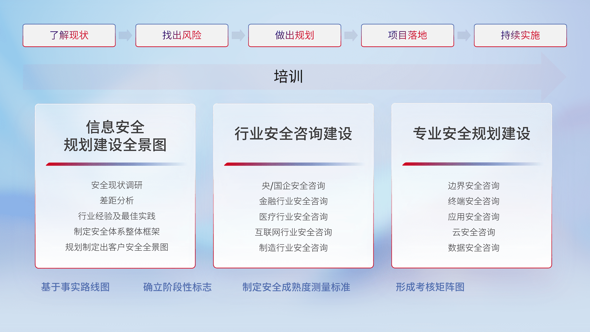 通过专业的法律咨询解读、、合规架构体现、、、、差异化解决方案、、测试实施支持等服务,,,为客户量身打造等保合规体系。。